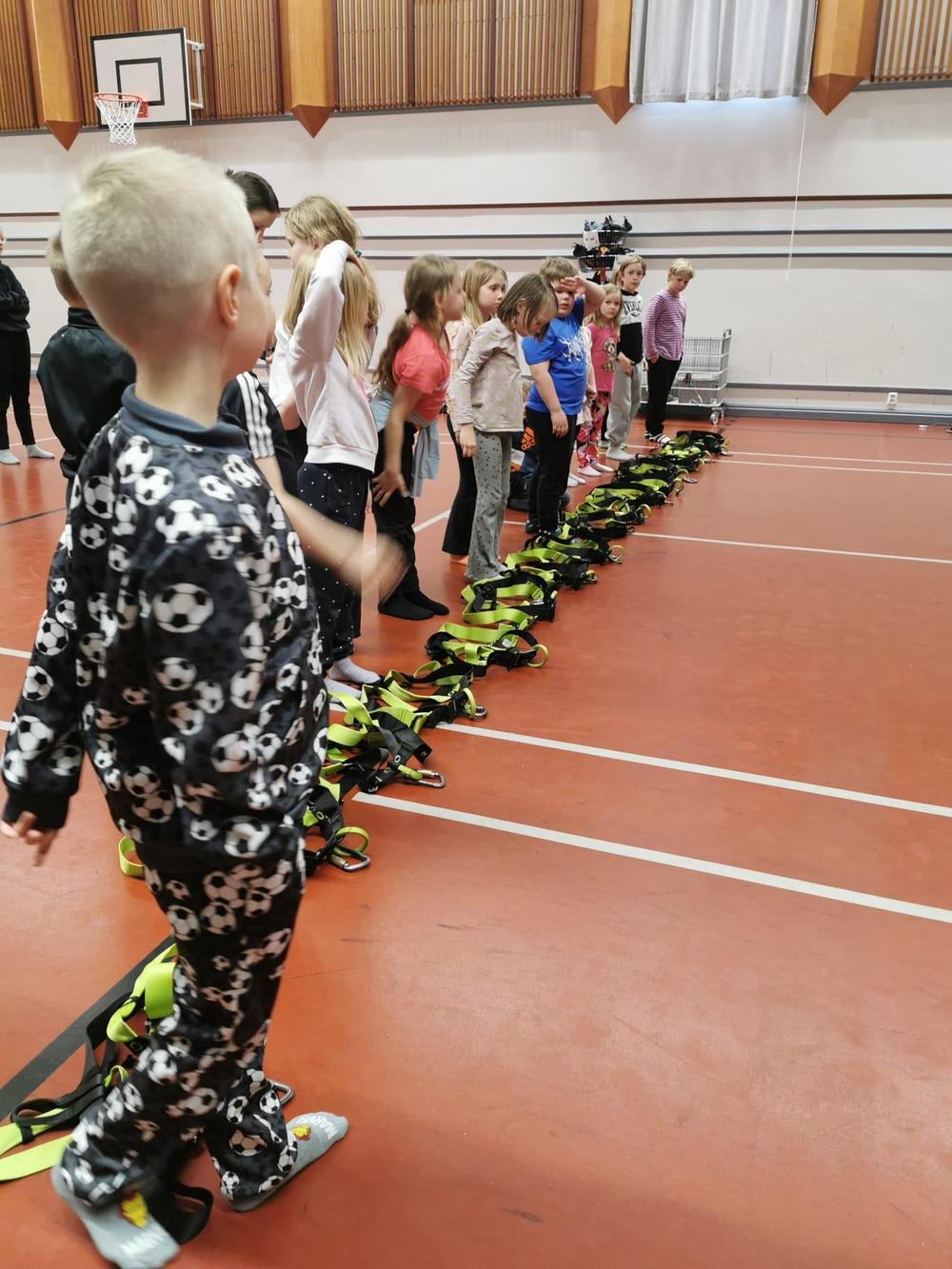 Maanantaina puuhaleiri alkoi tutustumis- ja nimileikeillä ulkona. Sateen yllättäessä siirryimme sisälle Marttisen liikuntasaliin pelaamaan muistipeliä. Leikkien jälkeen oli ruokailu, jonka jälkeen vapaata-aikaa noin tunnin verran. Iltapäivällä menimme Marttisen seinäkiipeilyyn, mikä oli monelle uutta ja mukavaa. Seinäkiipeilyssä tuli varmasti nälkä, joten seuraavaksi olikin välipala. Pienen purtavan jälkeen lapset pääsivät vielä kiipeilemään boulderointiluolaan.